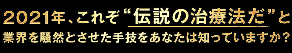 伝説というのはただの売り文句ではありません。実際に1つでも他の手技だったら「あり得ない!すごすぎる!」と言われるような伝説を6つ以上残しているのがこの治療法なんです。
